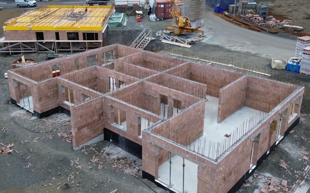 Þessi tvö parhús (alls fjögur íbúðarhús) eru hér á höfuðborgarsvæðinu. Neðri hæðirnar liggja að hluta að jarðvegi og var vel ígrundað hvernig best væri að ganga frá þeim veggjum til þess að þeir myndu þola áganginn. Það er myndskeið hér neðar á síðunni sem fjallar um veggi í þessum húsum sem liggja að jarðvegi.