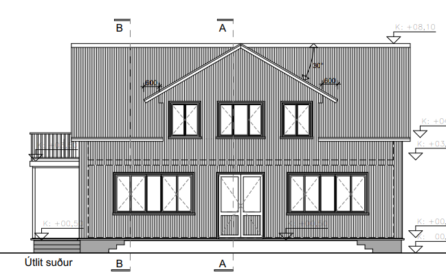 Tvö hús í þessum skemmtilega stíl eru að rísa við sjávarsíðuna fyrir norðan. Sökklar, burðarveggir og útveggir með einangrun eru úr byggingarsteinunum frá PAGO.