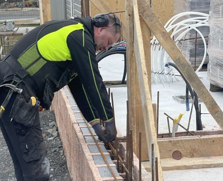 Járnabinding by olof | Apr 1, 2026Styrktarjárn eru sett í veggina jafnóðum og hver röð af steinum er hlaðin.